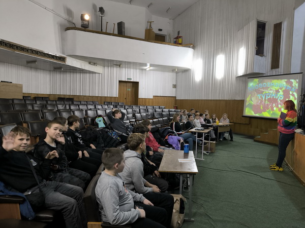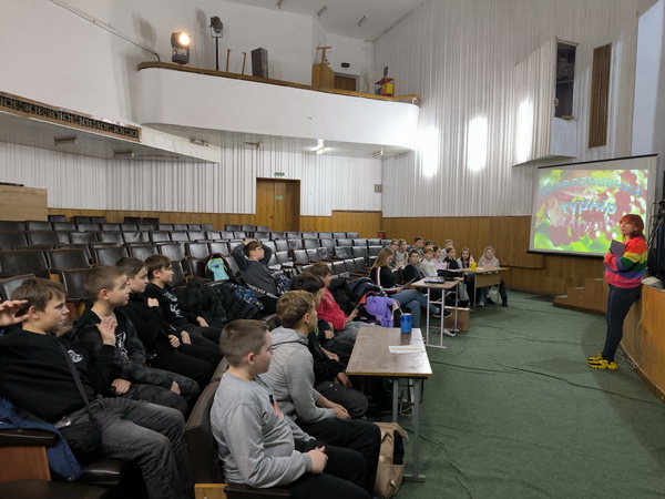 У четвер 6 листопада культорганізатори ЦДЮТ приймали у стінах рідного центру учнів 6 класів ЗОШ 5. Хлопці та дівчата взяли участь у інтелектуально-розважальній грі "Мовознавчий турнір". Обидві команди показали гідний рівень знання української мови. Відгадували значення фразеологізмів, складали слова із заданих літер, змагались у читанні скоромовок і навіть танцювали. Організатори та учасники зайвий раз довели, що українська мова може бути дуже цікавим предметом для обговорення, диспутів та ігор.