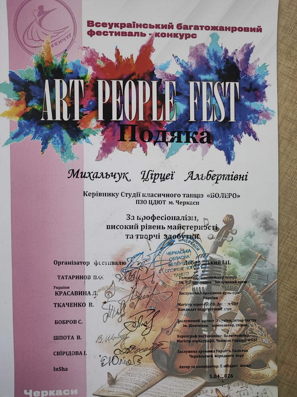 5 квітня Черкаська обласна філармонія перетворилася на центр мистецького драйву. Наші вихованці Центру дитячої та юнацької творчості гідно представили заклад на Всеукраїнському багатожанровому фестивалі «Art People Fest» та повернулися з неймовірним оберемком нагород!