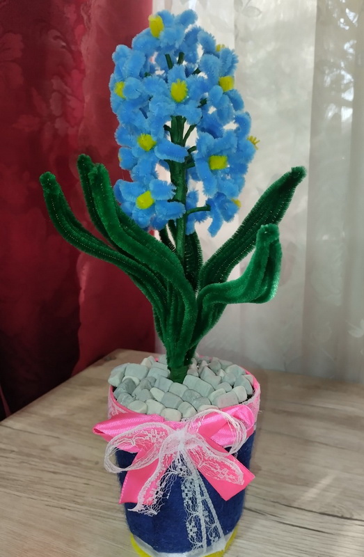 Бублей Віталіна (10 років) з роботою "Магія весни" в номінації "Весняна композиція", техніка виконання "Плетіння з синельного дроту" (світильник).