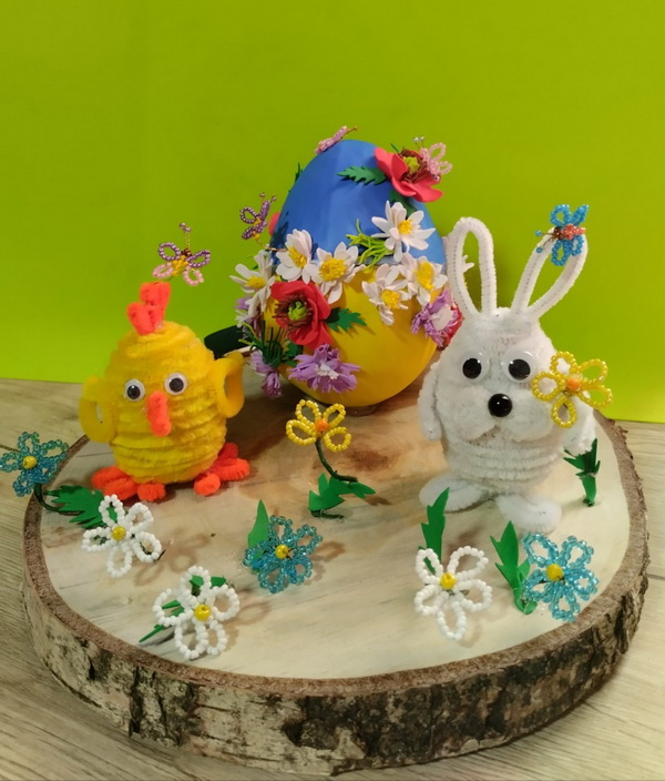 Будякова Аліана , «Колиска Життя» — яйце як першооснова всесвіту («світове яйце»), що спочиває в лоні природи (моделювання з фоамірану,синельного дроту, бісероплетіння).
