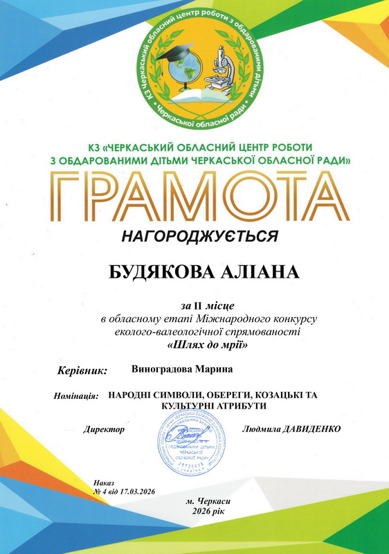Будякова Аліана та її робота "Це рідний край мій,рідна Україна"