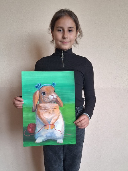 Ткаченко Дар'я зі своєю конкурсною роботою "Кролиця Бафі-моя помічниця"