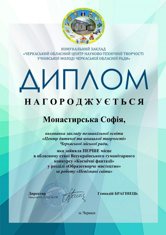 Всеукраїнського гуманітарного конкурсу "Космічні фантазії"