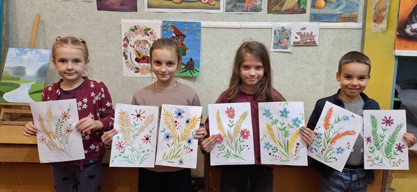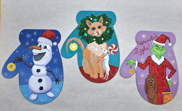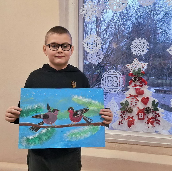 Учні гуртка презентують свої роботи з петриківського розпису та живопису на зимову тематику