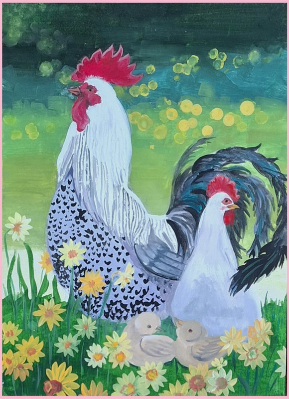 Петриківський розпис Марії Олефір ,"Танцюючий півник",форматА-3