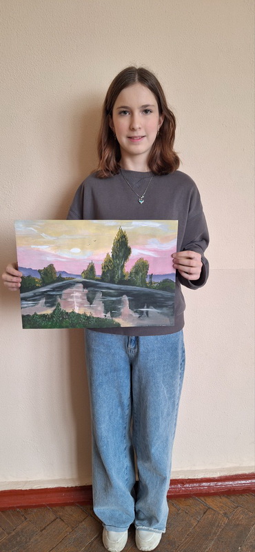 Гаріна Валентина зі своєю конкурсною роботою "Барви вечірнього міста"