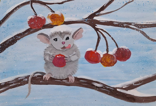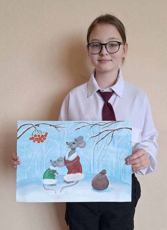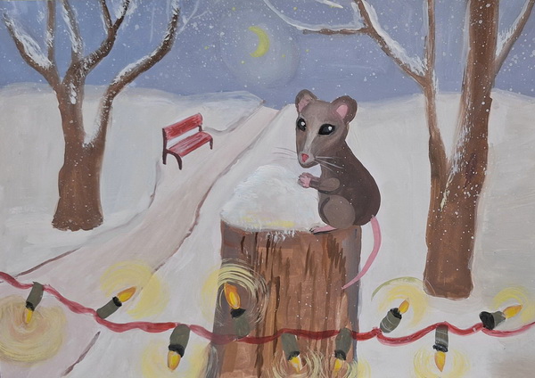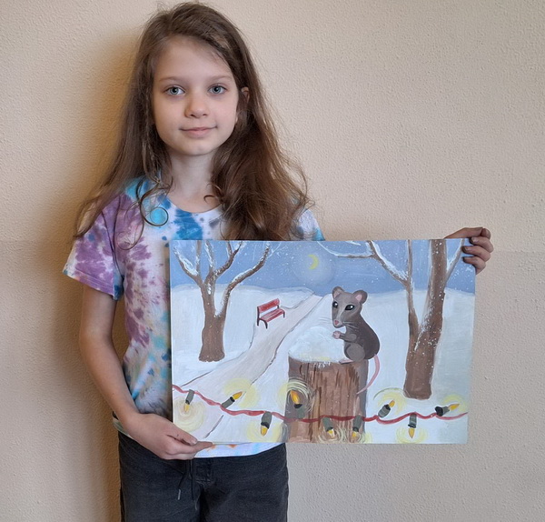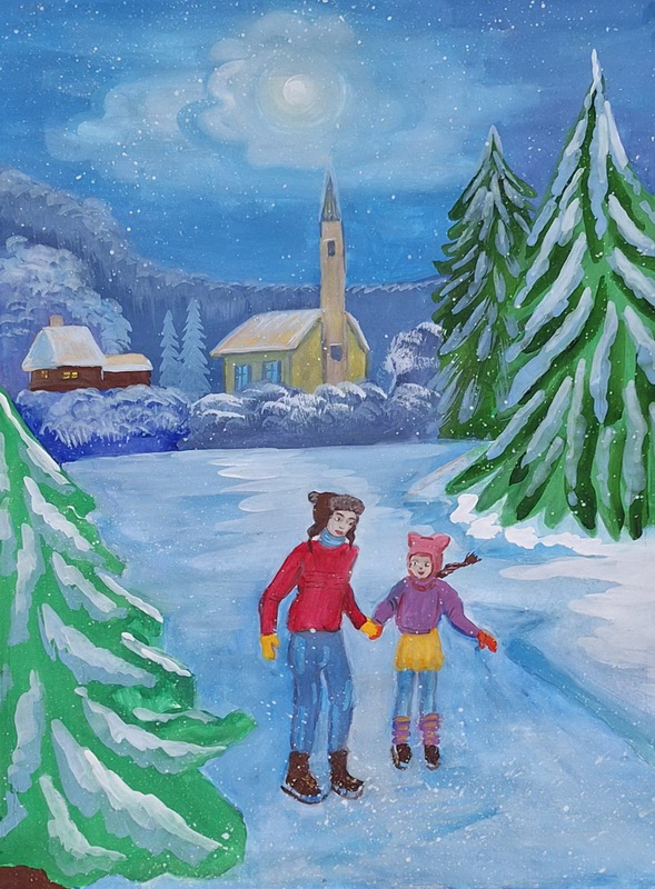 Березовська Вероніка (13років) намалювала зимовий пейзаж.