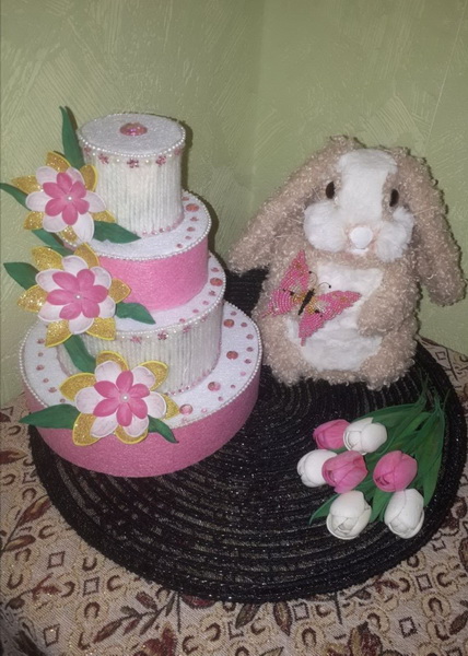 Всі елементи композиції(окрім стразів)-виключно ручна робота. Використані техники:бісероплетіння,фоаміранова флористика,ліплення з модуліну.