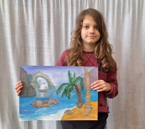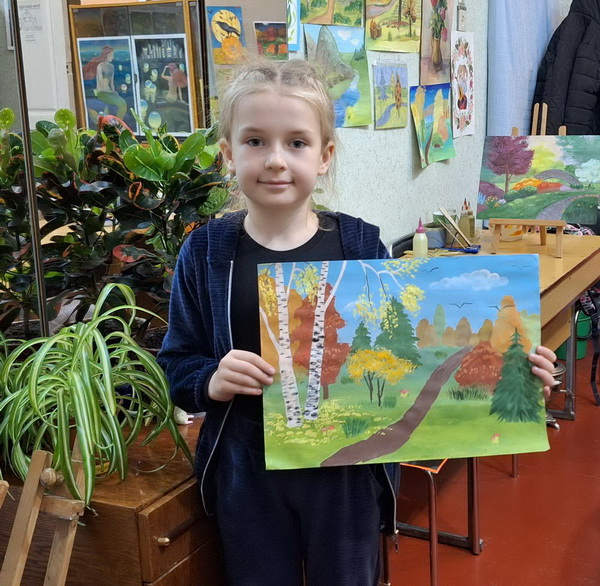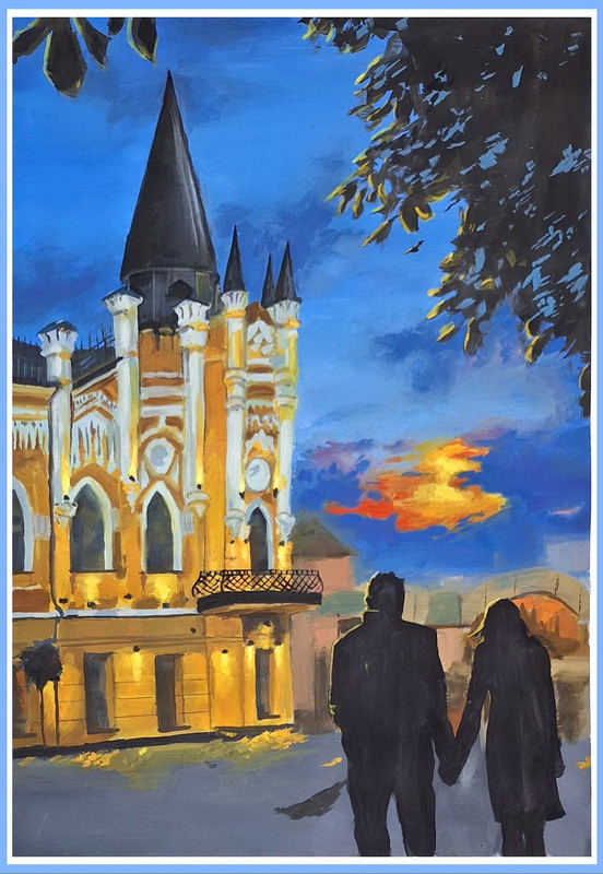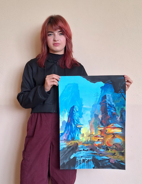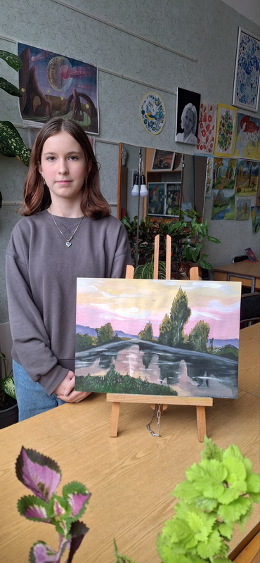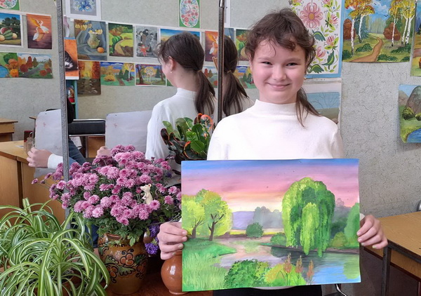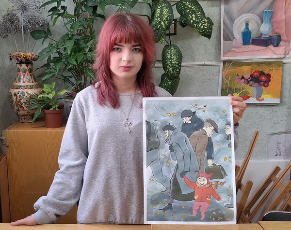 Гаріна Валентина зі своєю конкурсною роботою "Барви вечірнього міста"