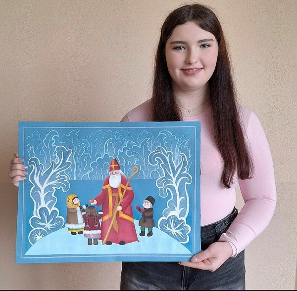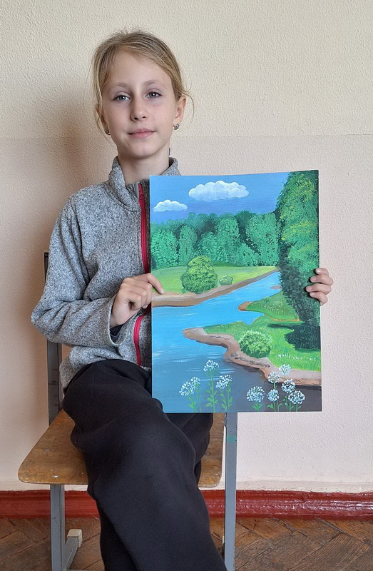 Березовська Вероніка (13років) намалювала зимовий пейзаж.