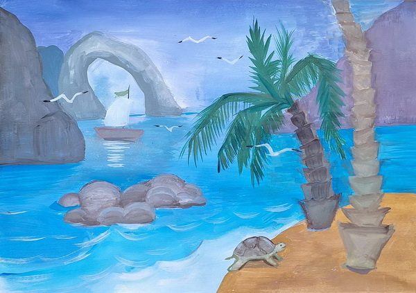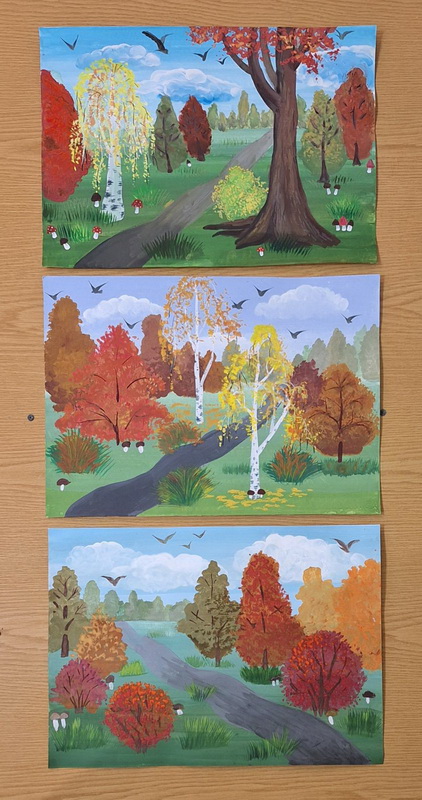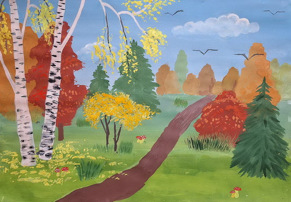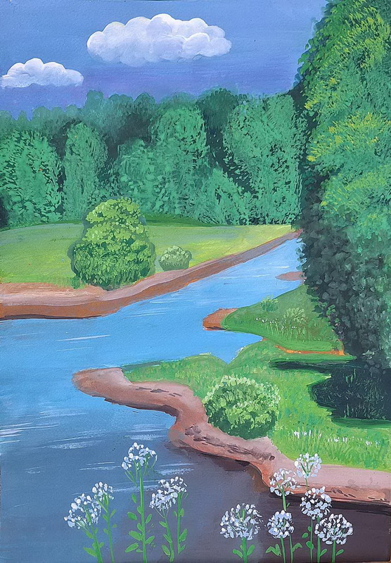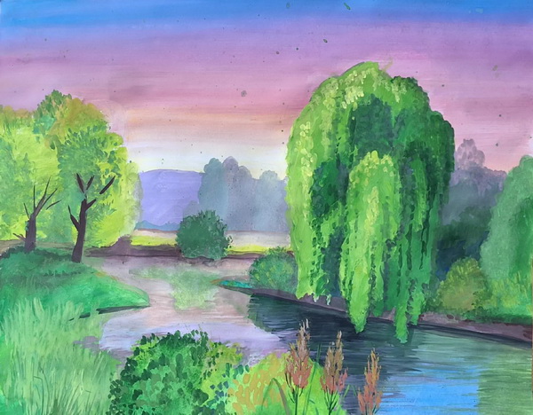 Живопис Лади Броцької. Пейзаж на форматі А-3, гуаш, папір.