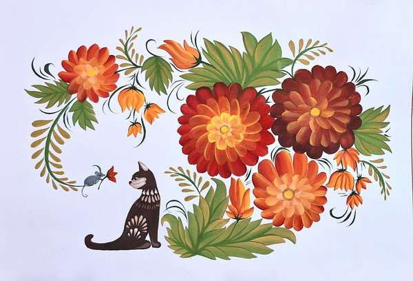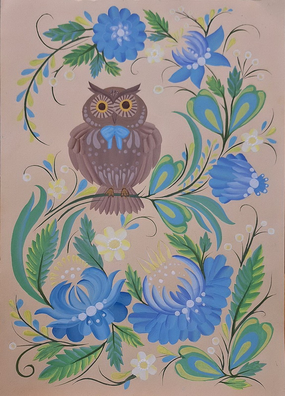 Петриківський розпис Марії Олефір ,"Танцюючий півник",форматА-3