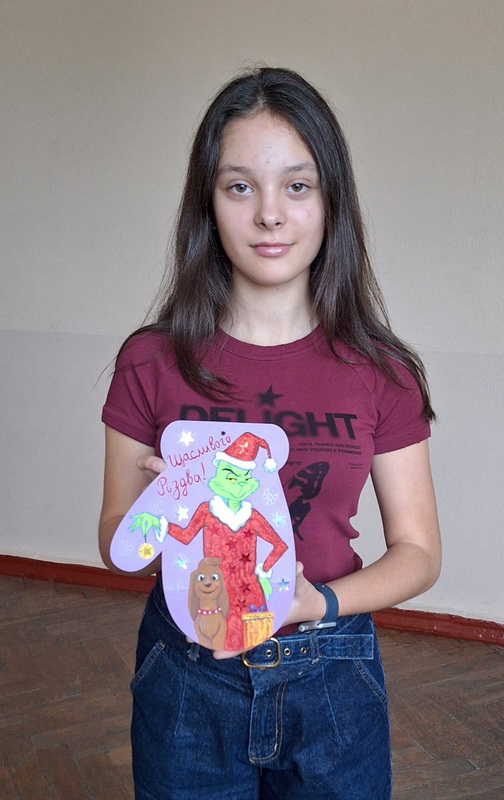 Нефьодова Дар'я зі своєю конкурсною роботою "Черкаси- місто закоханих людей"