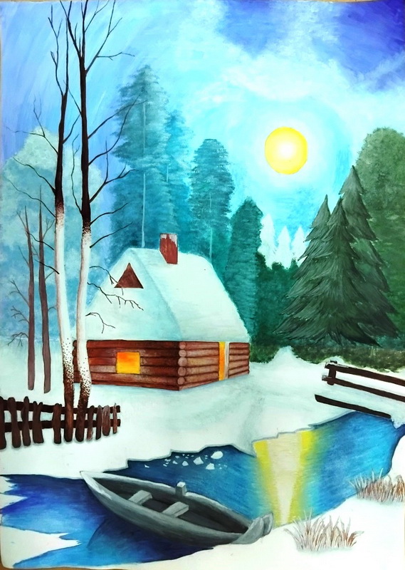 4. Головейко Софія - "Будинок у зимовому лісі" ,номінація -живопис.