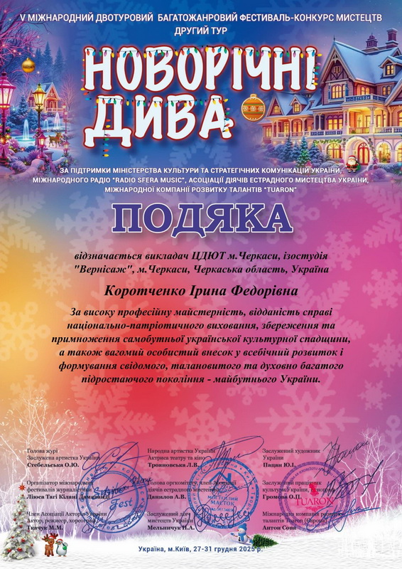 V МІЖНАРОДНИЙ ДВОТУРОВИЙ ФЕСТИВАЛЬ-КОНКУРС МИСТЕЦТВ «НОВОРІЧНІ ДИВА»