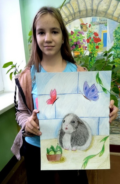 2.Кармазіна Софія "Морська свинка спостерігає за метеликами"