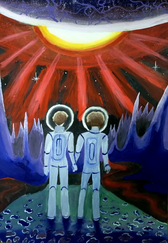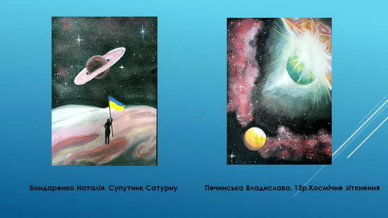 Тема космосу цікава художникам, тому що космос - наш майбутній дім. Художники натхненно малюють зірки, планети, а також, космонавтів, космічні кораблі, інопланетян, життя на інших планетах, та багато іншого. Щорічно наші вихованці приймають участь у Всеукраїнськом гуманітарном конкурсі «Космічні фантазії»