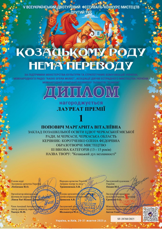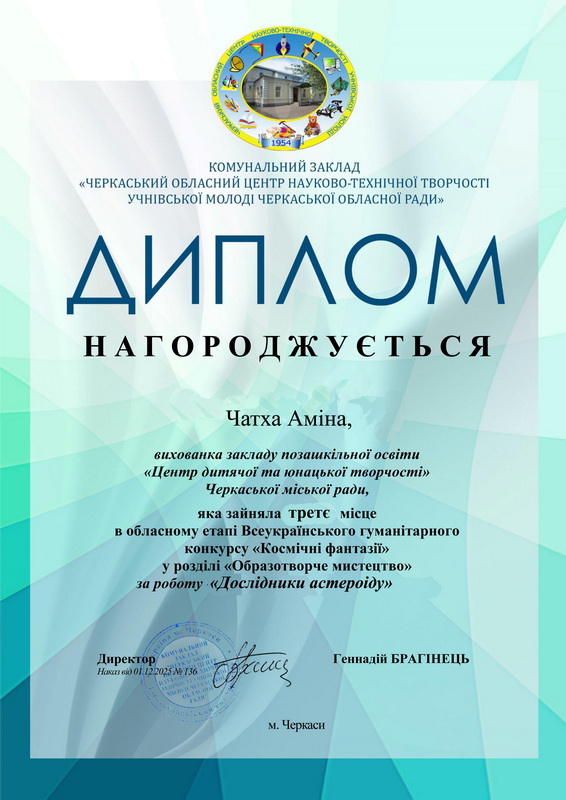 Четверікова Софія (14 років), наша учасниця з роботою та нагородою. Вітаємо!!!